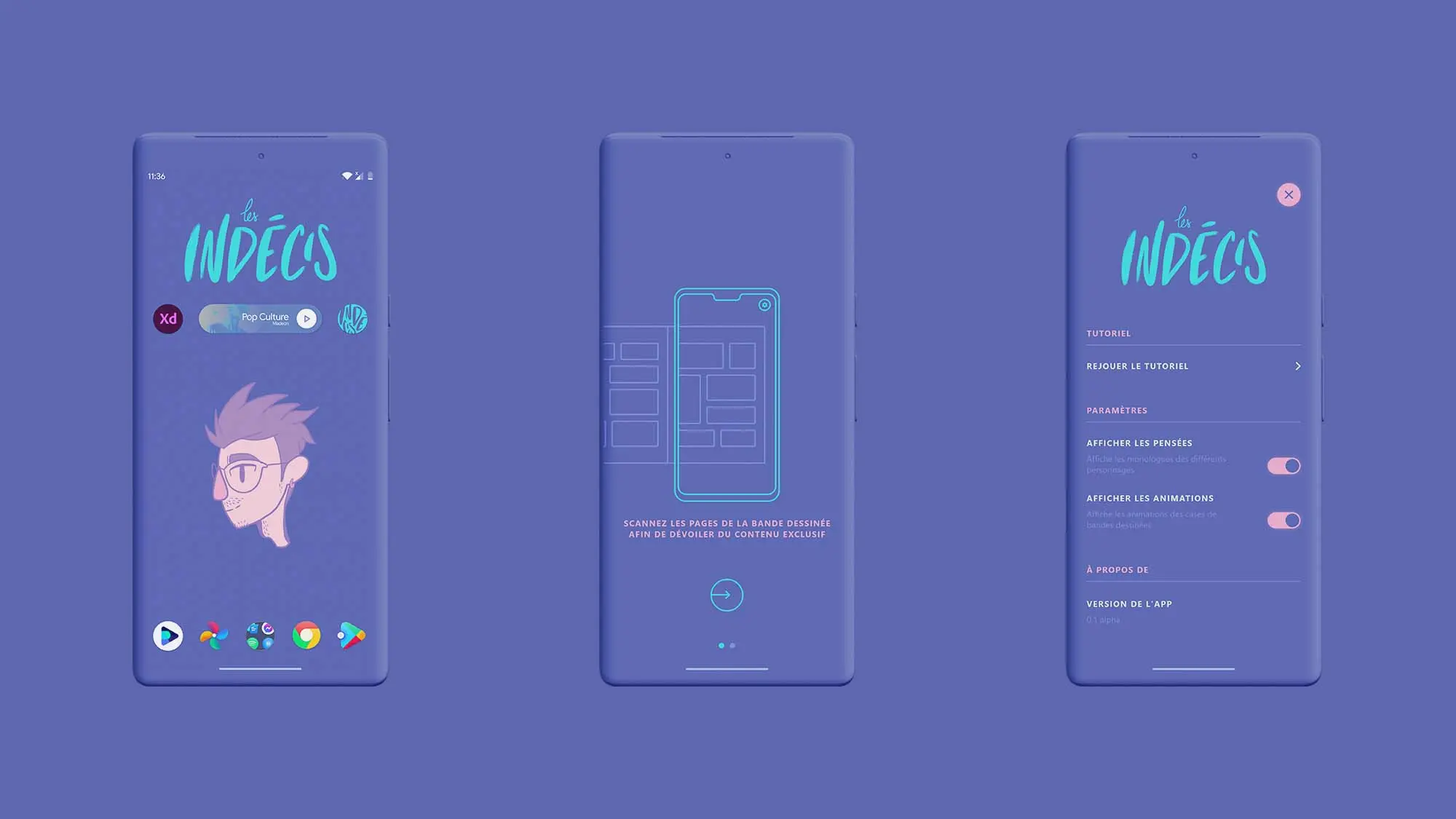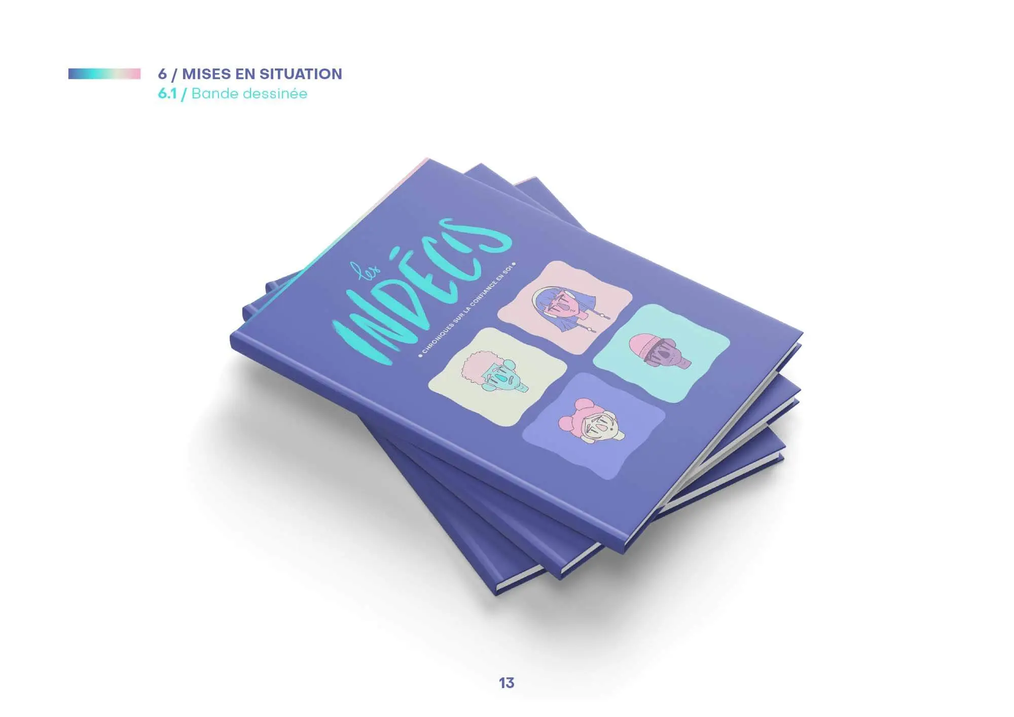 Les Indécis est une bande dessinée interactive destinée aux adolescents. Elle suit l’histoire de plusieurs personnages faisant face à un manque de confiance en eux dans la vie quotidienne. La bande dessinée est accompagnée d’une application de réalité augmentée facultative permettant de lire les pensées des personnages afin de mieux les comprendre.