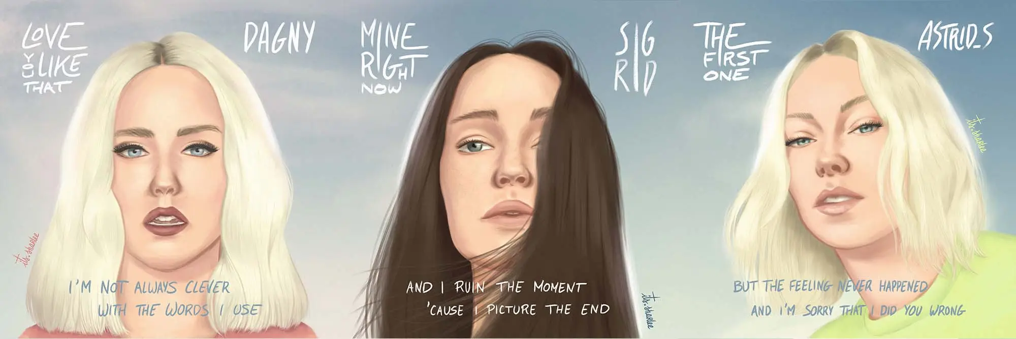 Various portraits (animated for some and static for the others) of musical artists, in which I'm extending their world based on lyrics, on the instrumental production or even the already existing visuals for a title or an album.